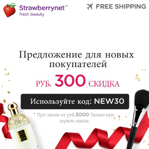 Официальный сайт Strawberrynet - это дисконтный интернет-магазин подлинной парфюмерии и косметики с крупными скидками, выигрышной ценой и непрерывными акциями. Скидки могут добиваться до 90%. На сайте представлено 33 000 товаров от 800 брендов. Продукты делятся на категории средства по уходу за кожей, для макияжа, для волос, парфюмерия мужская и женская, ароматы для дома. На официальном сайте Стравберри неизменно есть особые акции и предложения, которые меняются с некой периодичностью. Есть каждодневные предложения с товарами дня, на которые скидка действует 24 часа. Это изумительный метод урвать продукт по очень низкой цене, скидки в ежедневных предложениях очень к